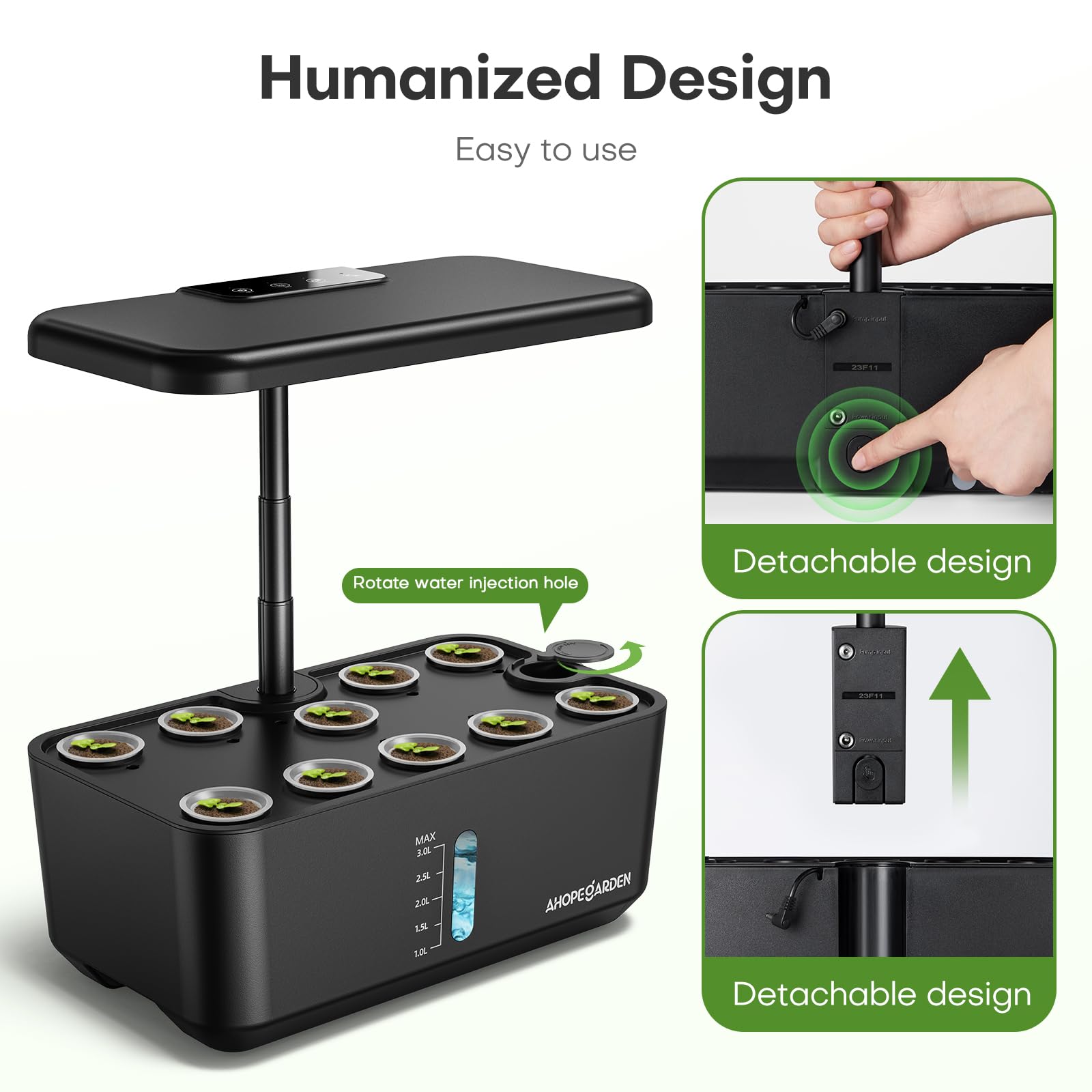 - High planting efficiency: Start an indoor herb garden with the Ahopegarden hydroponic growing system, which includes a water reservoir, an overhead LED grow light, and a circulation system that keeps the water fresh. The hydroponic setup and lighting systems allow plants to grow up to faster and healthier in controlled conditions. Simply add plant seeds, water, and nutrients to the reservoir and watch the plants grow