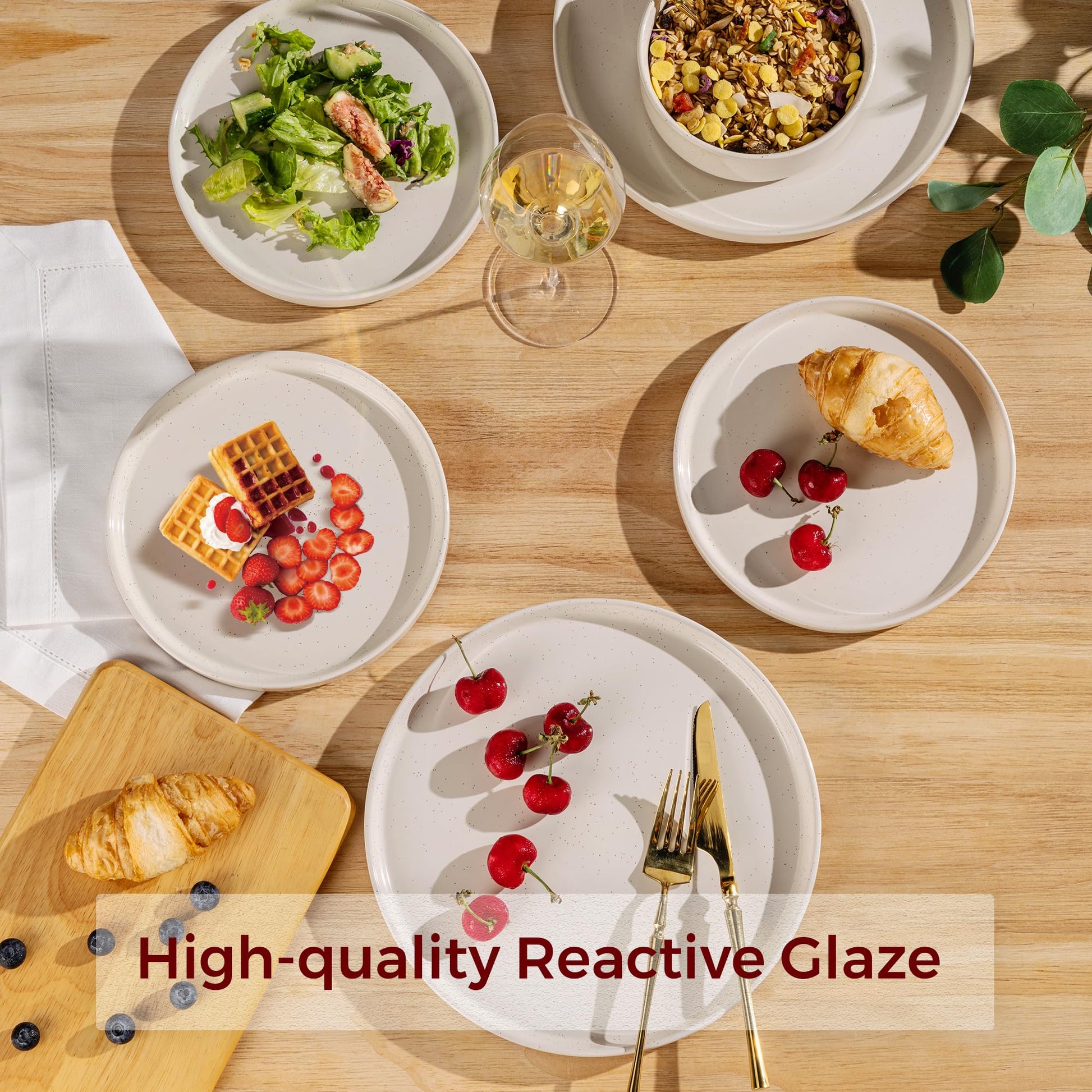 AmorArc Ceramic Dinnerware Set for 6 | Speckled Stoneware Plates and Bowls with Rustic Terracotta Underside| Scratch Resistant,Dishwasher & Microwave Safe Dishes Sets- 18pcs Beige