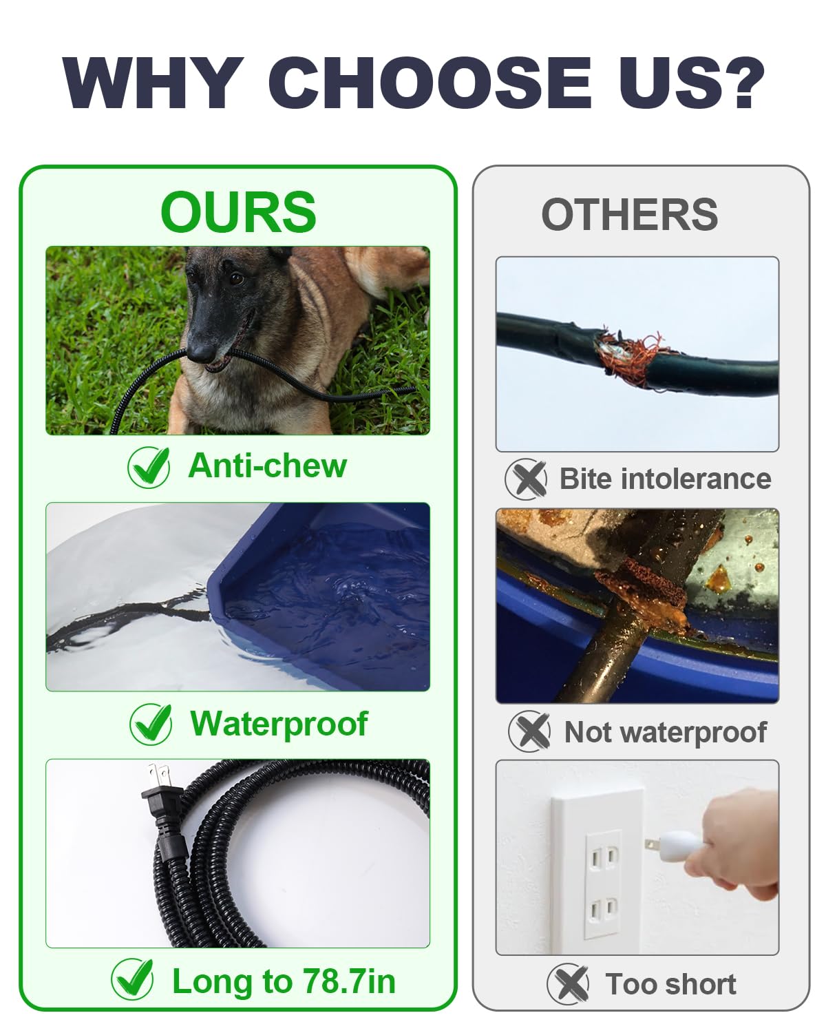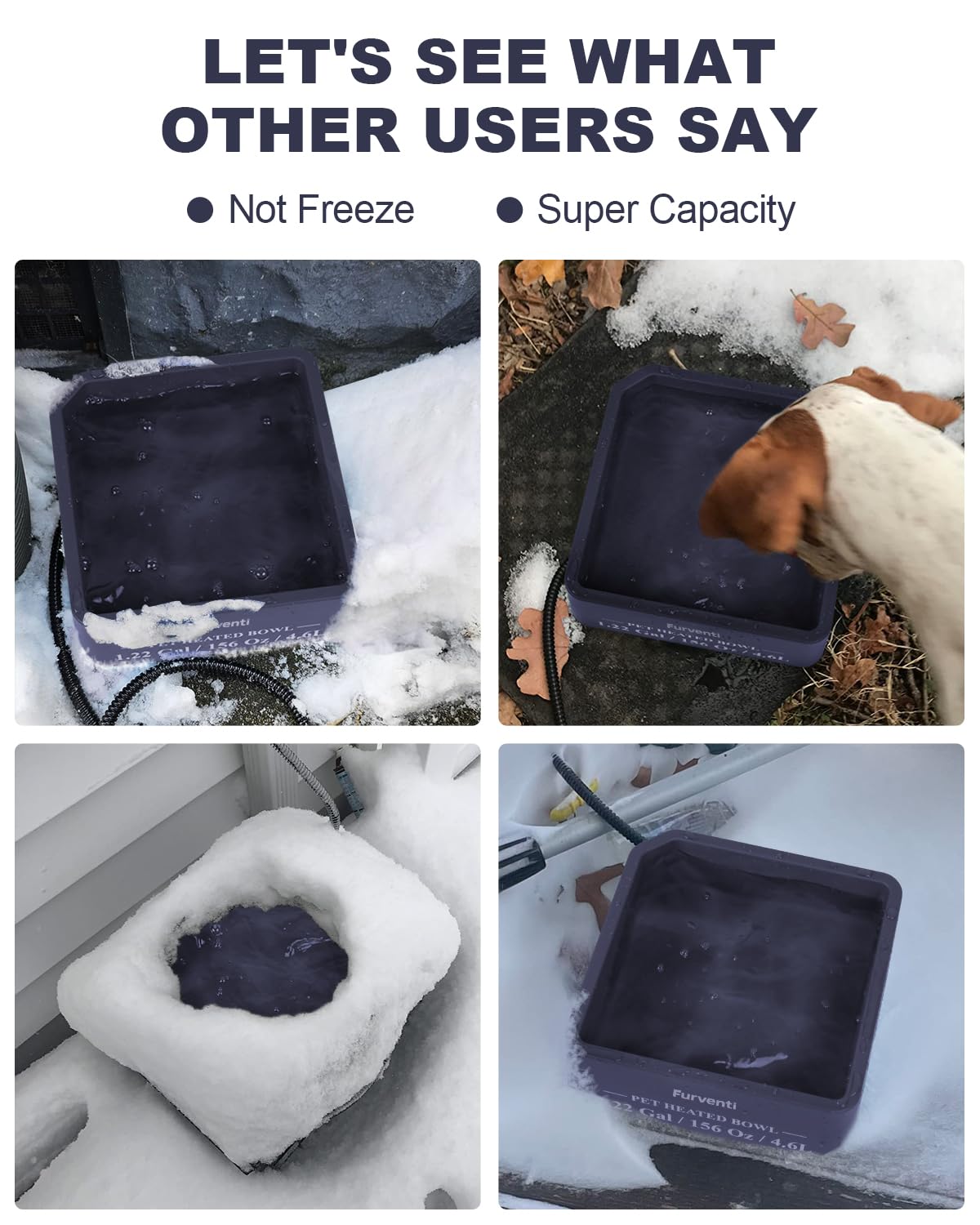- ššš¬š¢š š§šš ššØš« šš±šš«šš¦š ššššš”šš«- The heated pet bowl is completely waterproof and specially designed for outdoor harsh conditions. This heated dog bowl is made of premium BPA-free plastic. It is non-toxic and cold-resistant.So you don't have to worry about short circuit caused by wind, snow and rain.